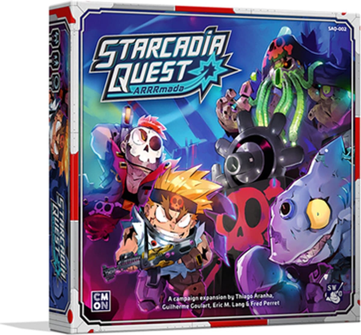 - Starcadia Quest: ARRRmada tilt je spelervaring naar een hoger niveau. Deze unieke uitbreiding kan naadloos worden geïntegreerd met elk Starcadia scenario, waardoor je avonturen in de ruimte nog boeiender worden. Maar let op: de piraten van ARRRmada zijn niet te onderschatten. Zodra er een Pirate Assault kaart wordt geactiveerd terwijl er piraten op het bord zijn, stelen ze enkele van de Upgrade tokens die anders als buit voor de spelers beschikbaar zouden zijn!